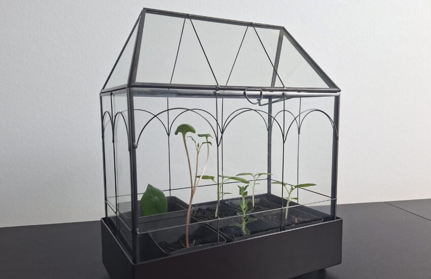 Die Ölkanne habe ich zu meiner Schande allerdings aus der Kiste gefischt. Dafür verlässt aber eine ungeliebte Glaskaraffe, die wir als Vase genutzt hatten, den Haushalt und ich habe endlich eine Gießkanne für meine Pflänzchen.