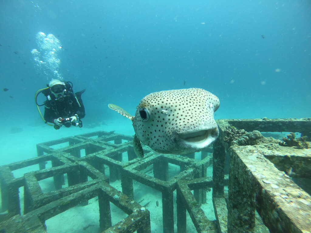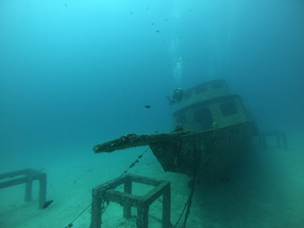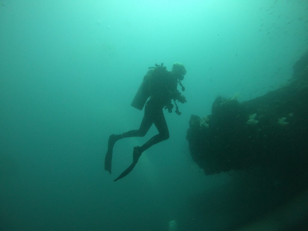Was man auf den Bildern teilweise sieht, sind große Betonquader. Das ist eine Variante von künstlichen Riffen, die man an vielen Plätzen installiert hat. Man kämpft gegen die Auswirkungen des Klimawandels und die menschengemachten Riffalternativen werden von den Meeresbewohnern dankend angenommen. Ebenso wie die Wracks, die wie kleine Inseln voller Leben auf dem sandigen Meeresboden liegen. Diese Lost Places haben nicht immer eine tragische Hintergrundgeschichte. Manche werden auch absichtlich versenkt – natürlich nach gründlicher Entkernung und Reinigung.