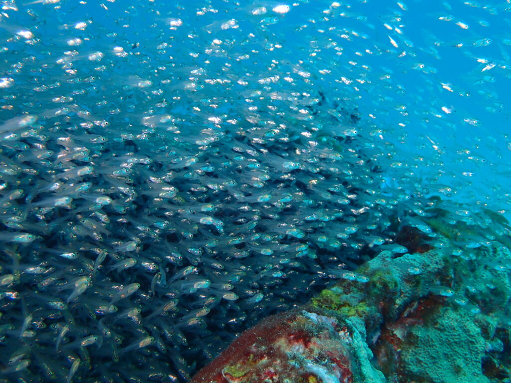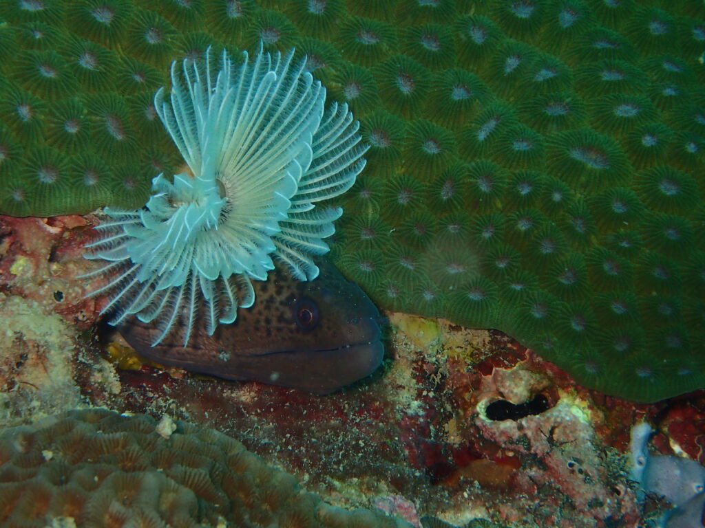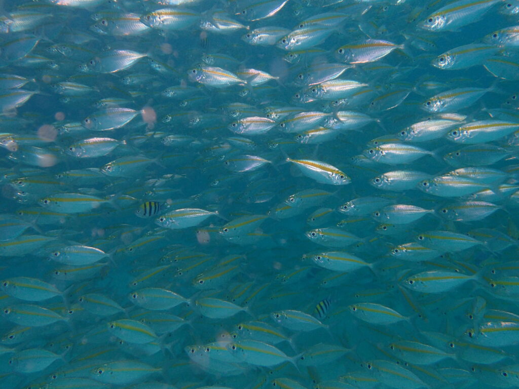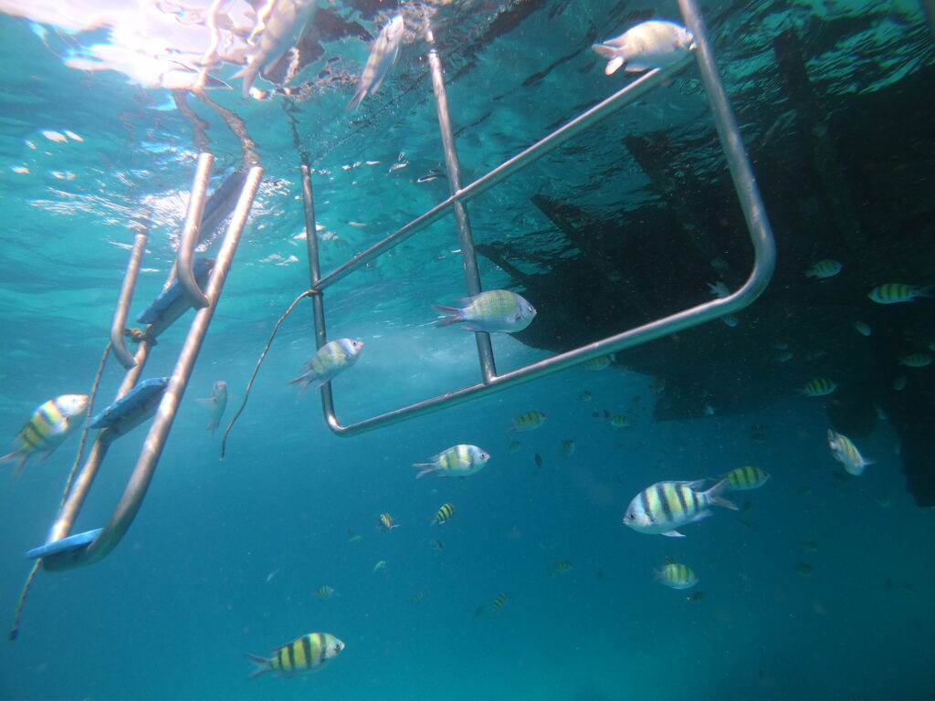 Für die interessanten Tauchplätze ist man auch auf ein Tauchboot angewiesen. Wir haben zwar einmal einen Tauchgang vom Strand aus unternommen, den hätten wir uns ehrlich gesagt aber auch sparen können. Die Bootstauchgänge waren dafür wirklich schön und dank ruhiger See auch sehr entspannt. Und sobald das Boot irgendwo ankert, sammeln sich die Fische darunter – ein Highlight beim Auftauchen am Ende eines Tauchgangs.