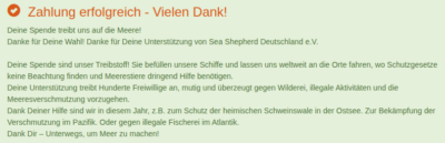 Effizienter und effektiver ist es also, sich einige wenige Herzensthemen herauszupicken und bei diesen zu bleiben. Für mich ist das nicht schwer – ich liebe das Meer und spende daher schon lange an Sea Shepherd. Wenn ich schon selbst nicht sehr seefest bin, unterstütze ich gerne die, die mit ihrem Einsatz direkt vor Ort etwas bewirken, for the Ocean. Der örtliche Tierschutz bekommt noch seinen Anteil, ein Dankeschön geht an Wikipedia und das war es dann.