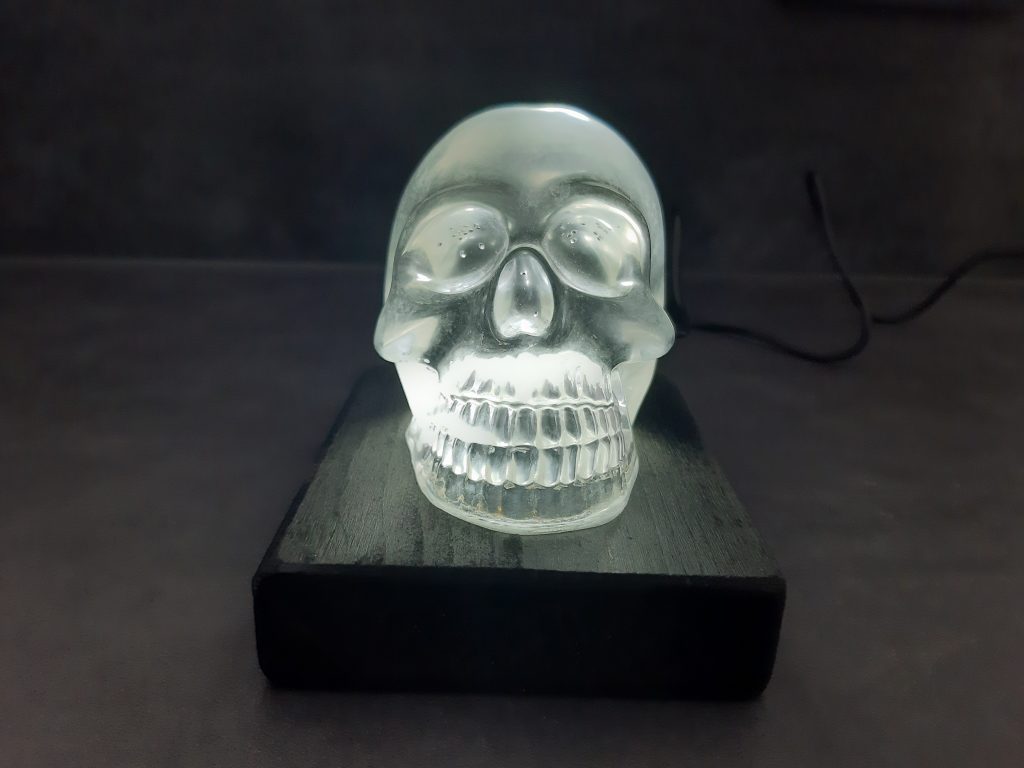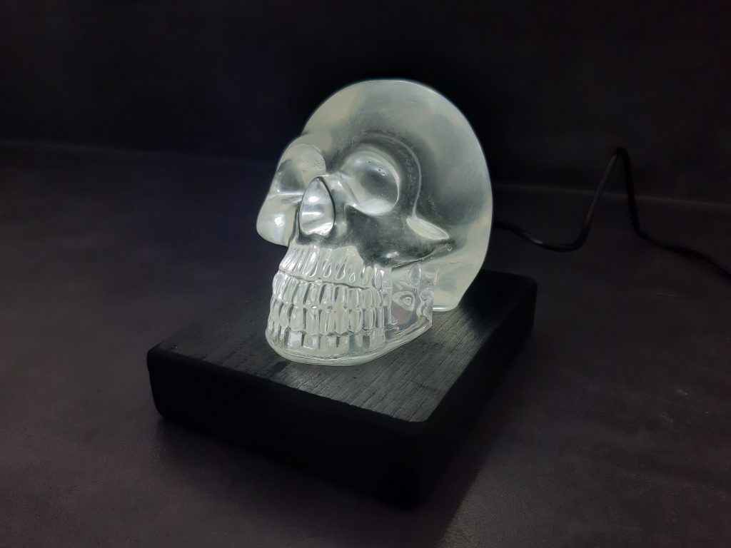 Natürlich habe ich die Form auch mal mit Epoxidharz getestet. Wenn man das ganze mit Licht kombiniert, wird’s richtig spannend. Von unten beleuchtet bekommt so ein schnöder Harzkopf einen richtig coolen Effekt. Das Testexemplar durfte also bleiben und wandert zwischen Badezimmer, Terrasse und Schlafzimmer hin und her. Überhaupt ist unsere Deko teilweise sehr mobil und wird gerne mal an die aktuell bevorzugten Aufenthaltsorte verpflanzt. Im Sommer mehr draußen, im Winter wieder drinnen.