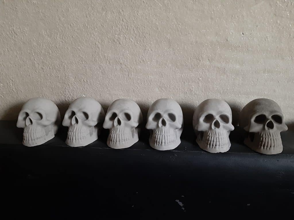 Deine Köpfe sind wirklich klasse geworden, mir gefällt vor allem der aus Epoxidharrz. Erinnert mich an den kristallenen, um den es in einem Indiana Jones geht. Und deine Massenproduktion ist ja keine, weil jeder einzelne Schädel von Hand gemacht ist. Solange du Abnehmer hast, kannst du also getrost weitermachen. Und wenn die sich erschöpfen, dann baust du in deinem Garten so ein kleines Beinhaus in den Garten (google mal „Beinhaus Sedlec- wird dir gefallen!).
