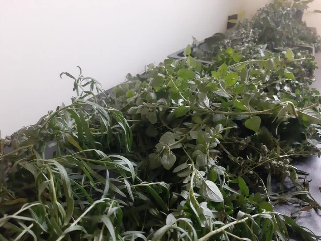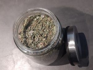 Da ich schon einmal Kräuter aus dem Garten der Schwiegermama im mittelgroßen Stil getrocknet hatte, wusste ich, was dann auf mich zu kommt. Die ganzen getrockneten Blätter und Stängel müssen zerkleinert werden, am besten lassen sie sich einfach von Hand zerbröseln. Und da wir es mit den Mengenverhältnissen nicht so genau nehmen, wird alles vermischt und in große Schraubgläser abgefüllt. Danach fühle ich mich immer für einige Stunden high und es braucht mehrere Durchgänge Händewaschen, bis der Geruch verflogen ist. Die Menge, die wir dieses Mal zusammenbekommen haben, reicht eventuell sogar über den Winter. Das heißt, wir müssen keine teuren Kräuter aus dem Supermarkt kaufen und sparen so ein ganz nettes Sümmchen ein. Im Schnitt kosten die Päckchen dort nämlich so zwischen 60 bis 80 Euro pro Kilo.