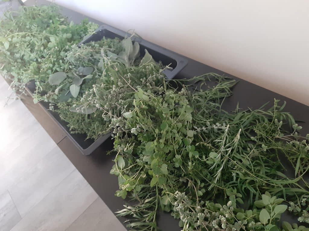 kräuter waren auch das erste, was der BWHgarten in grossen mengen hergegeben hat – aber erst, nachdem ich 2015 (´16 ? – müsste im blog nachsehen) den *kräutersarkophag* bauen liess – davor war hier ja noch „normales“ klima und für mediterrane kräuter viel zu feucht & kühl – im sommer.