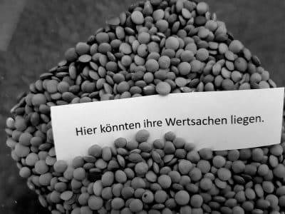 So abstrakt die Vorstellung einerseits ist, so lustig ist das Bild, das wir uns andererseits darüber ausmalen. Denn wer hier im Haus nach Wertsachen sucht, dürfte bitter enttäuscht sein. Außer ein bisschen Kleingeld, das wir als Trinkgeld für den Pizzaboten zur Seite gelegt haben, sind hier keinerlei Barschaften zu finden. Auch das Schmuckkästchen ist geradezu winzig und enthält nur einige wenige Stücke aus ein paar Gramm Silber. Gold und Edelsteine sucht man hier vergebens.